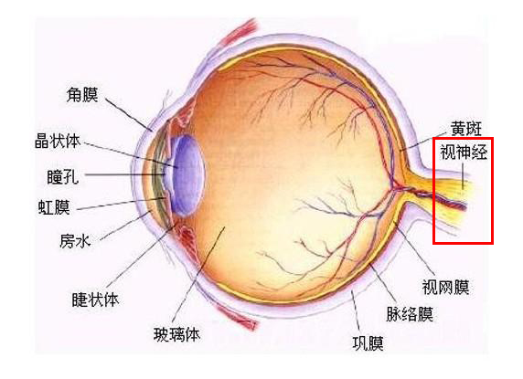 視神經(jīng)在眼睛的最后面,通過它,我們才能知道眼睛看到了什么。