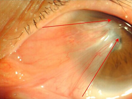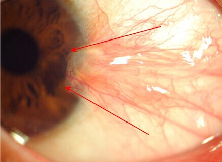階段二:胬肉長到角膜上,眼睛看東西會出現(xiàn)輕微的模糊。這是因為胬肉會牽扯角膜,使角膜變形,引起散光。