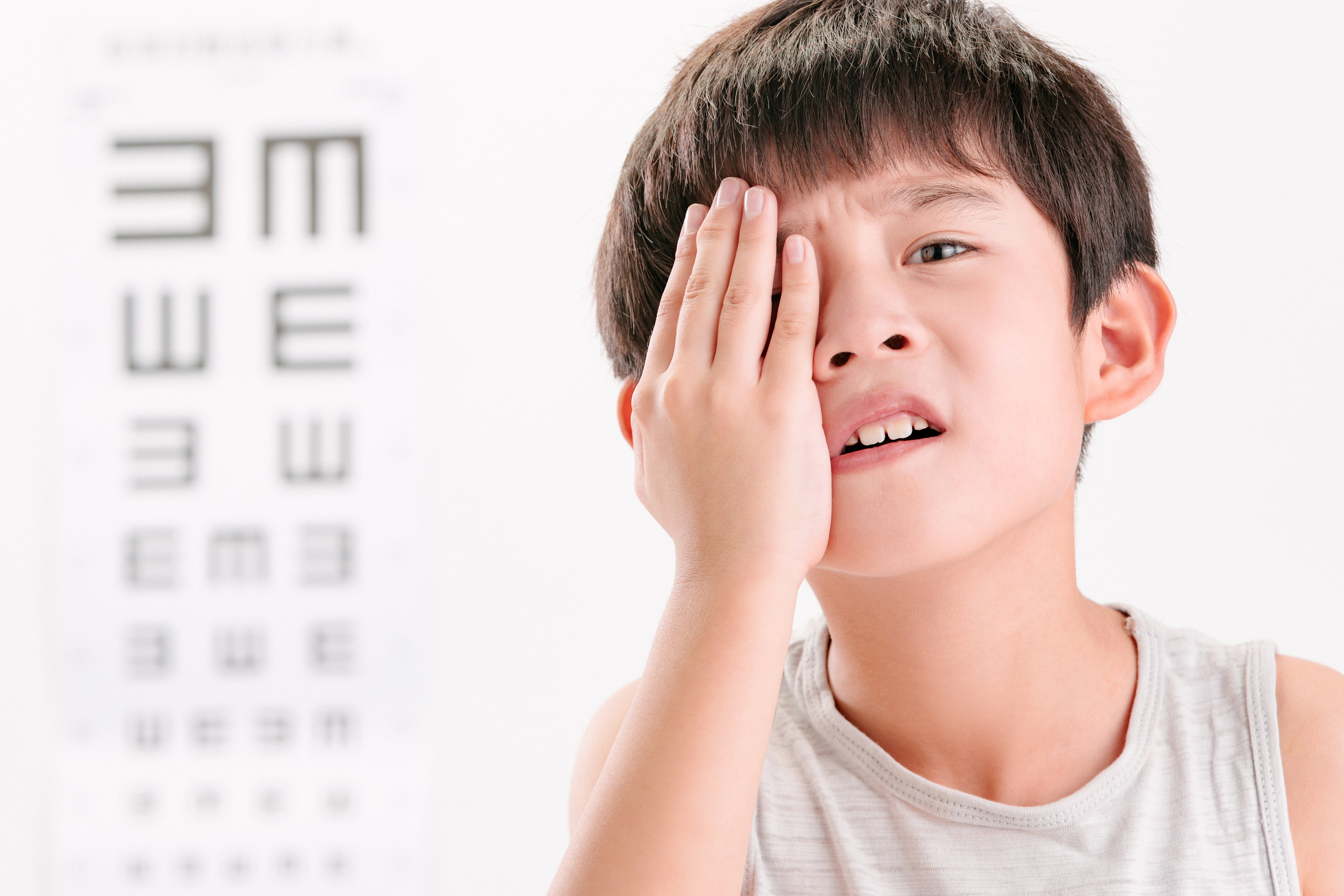 孩子近視了,往往會采取瞇眼的辦法來彌補,因為瞇眼時眼瞼可以遮擋部分瞳孔,減少彌散光線,減少散光的影響,從而暫時改善視敏度。但是,不斷瞇眼讓孩子眼周肌肉過度緊張,很容易變得又酸又痛。