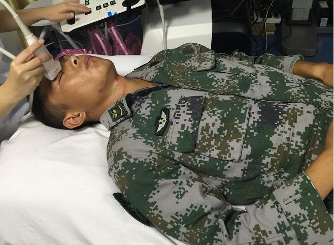 護士為戰(zhàn)士小王做眼部B超