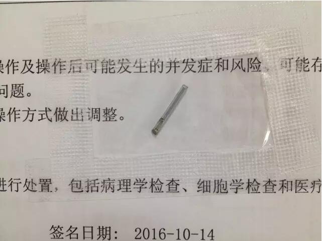 當(dāng)天晚上,伍端曉接診后,詳細(xì)檢查后發(fā)現(xiàn)這枚鐵釘已經(jīng)將眼球射穿了,需要馬上手術(shù)取出。在經(jīng)過(guò)1個(gè)多小時(shí)的精心手術(shù),伍主任在張師傅的眼里取出了一根約10毫米長(zhǎng)的鐵釘!