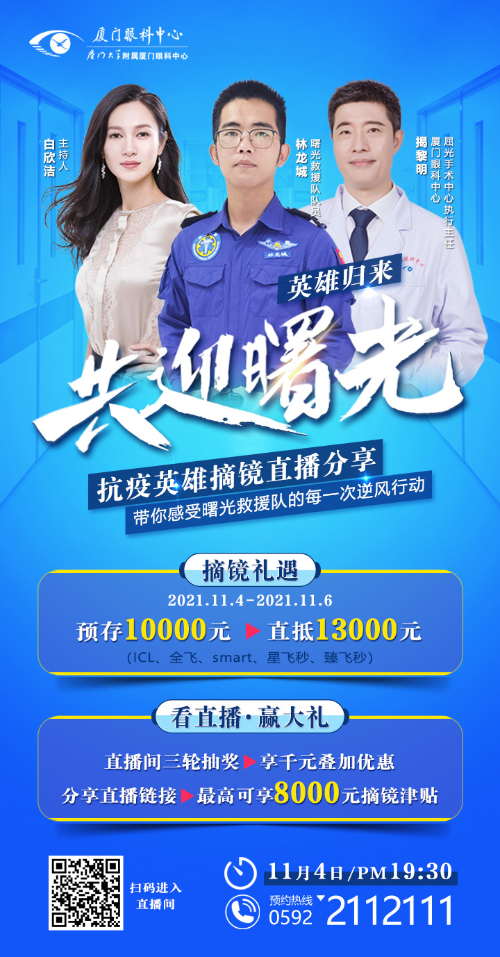 2021年11月1日-11月3日發(fā)布話題#我在廈門眼科中心成功摘鏡啦#+摘鏡自拍照 1 張至 朋友圈 即可獲得幸運(yùn)禮包:價(jià)值300元的術(shù)后復(fù)查券 1 張( 3次/年 )