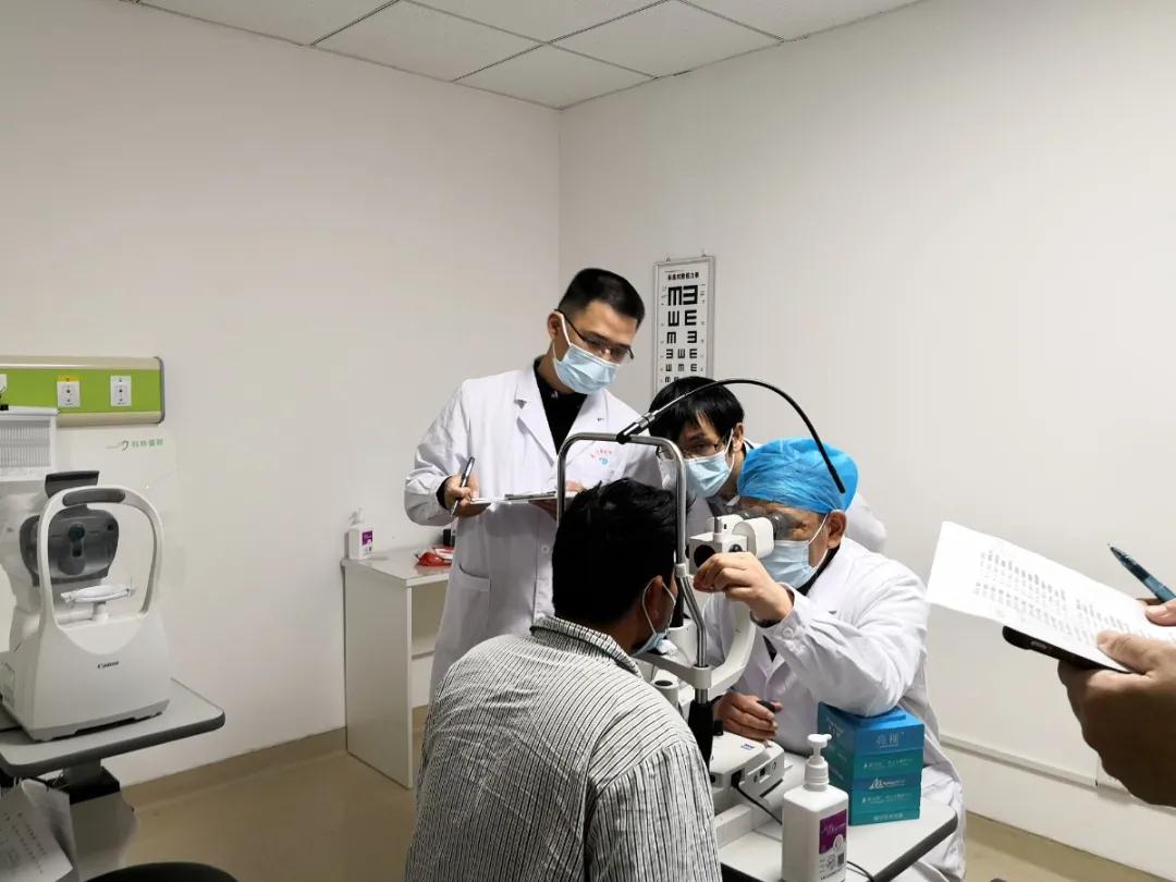 查房時,眼表與角膜病??浦魅螀亲o平教授親切詢問到,經過持續(xù)的加壓包扎,局部抗炎、預防感染、促進眼表修復等對癥治療,劉先生右眼角膜植片貼附良好,裸眼視力已經恢復至0.3。