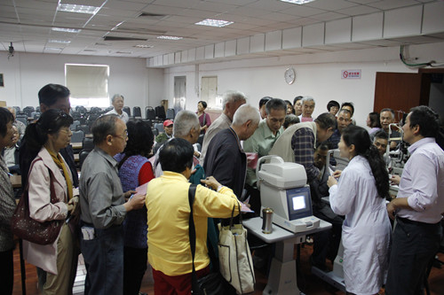 現(xiàn)場免費檢查眼睛,參加者排隊等候