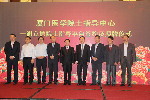作為本次論壇的一個(gè)重要環(huán)節(jié):廈門醫(yī)學(xué)院士指導(dǎo)中心——謝立信院士指導(dǎo)平臺(tái)簽約授牌儀式在廈門市委市政府的關(guān)心支持,以及廈門市衛(wèi)生計(jì)生委員會(huì)的大力推動(dòng)下如期舉行。