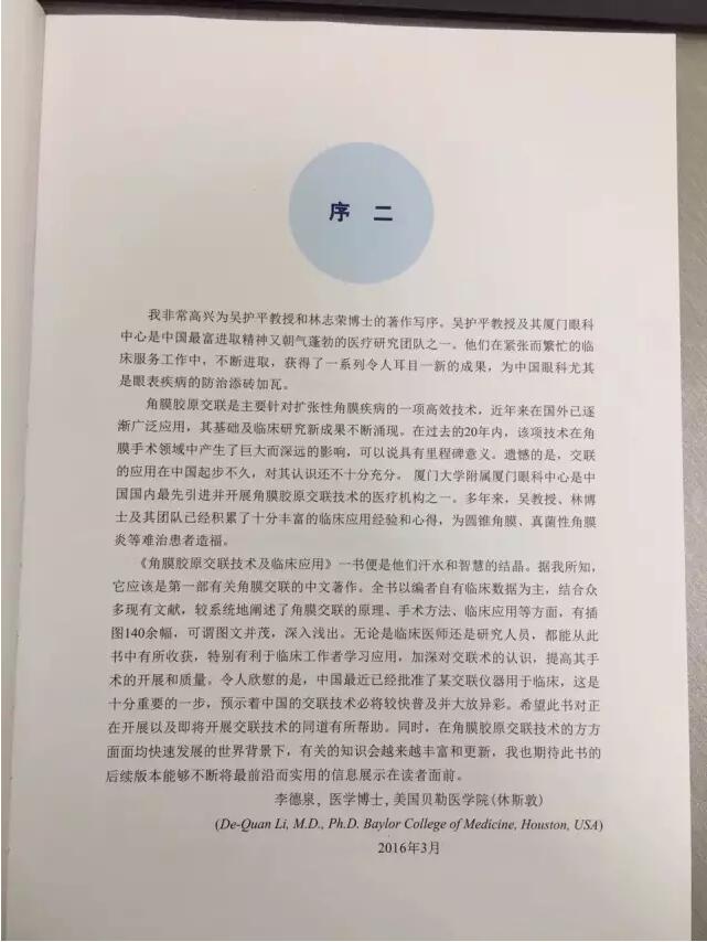 【文章導(dǎo)讀】由廈門眼科中心吳護(hù)平教授、林志榮博士后主編,中國干眼之父劉祖國教授主審的《角膜膠原交聯(lián)技術(shù)及臨床應(yīng)用》出刊啦,7月上旬將與大家正式見面啦! 《角膜膠原交聯(lián)技術(shù)及臨床