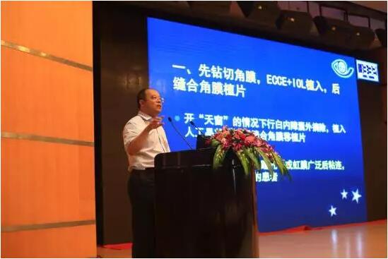 山東省眼科醫(yī)院的史偉云教授帶來了“角膜移植聯合白內障摘除人工晶狀體植入術的設計”的主題演講。他主要以播放手術錄像來講解這個比較復雜的三聯手術,生動又直觀。在手術技巧和圍手術期處理上,他重點闡述了IOL植入前屈光度的計算、術前瞳孔的處理及麻醉和眼球軟化等4個方面。三聯手術術后處理除了按人工晶狀體植入常規(guī)處理外,從角膜移植的角度應考慮術后視力問題,要注意穿透性角膜移植的并發(fā)癥,還要同時注意白內障手術后等問題。