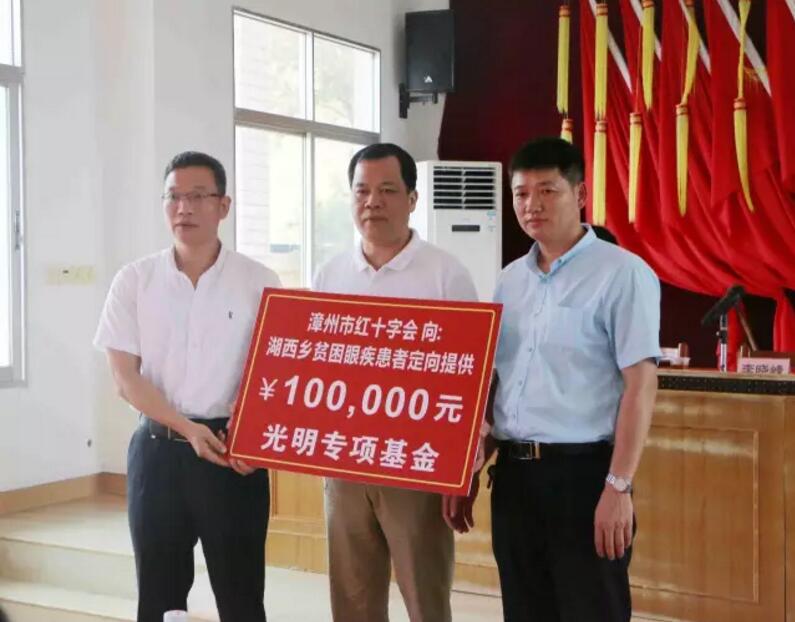 當(dāng)天的活動(dòng)現(xiàn)場(chǎng),廈門(mén)眼科中心和漳州市紅十會(huì)一起為湖西鄉(xiāng)貧困眼疾患者捐贈(zèng)了10萬(wàn)元的“光明專項(xiàng)基金”。