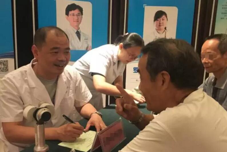 ▲廈門眼科中心白內(nèi)障科陳偉主任親切詢問患者病情