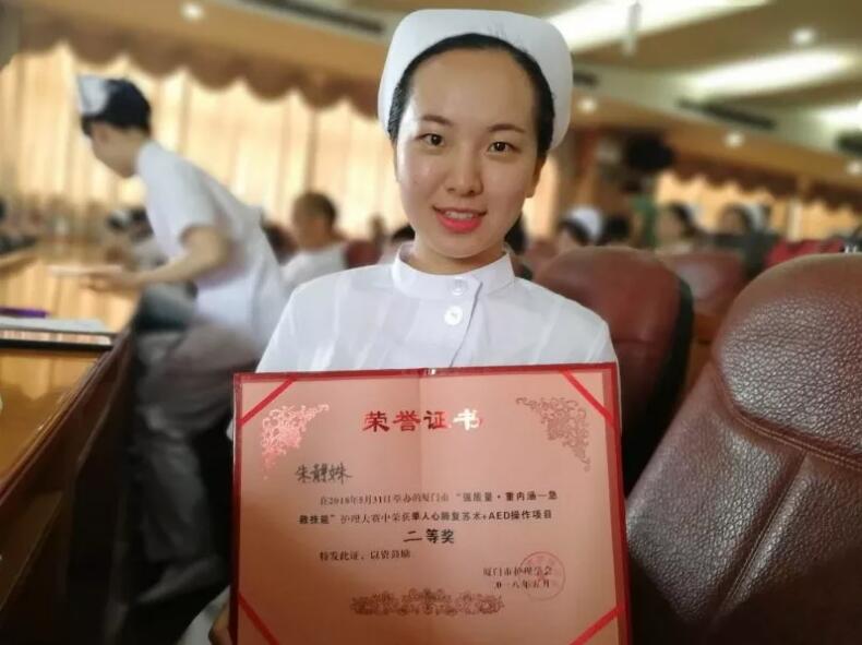 期間,廈門眼科中心手術室護士朱靜殊榮獲“單人心肺復蘇+AED操作項目”二等獎!
