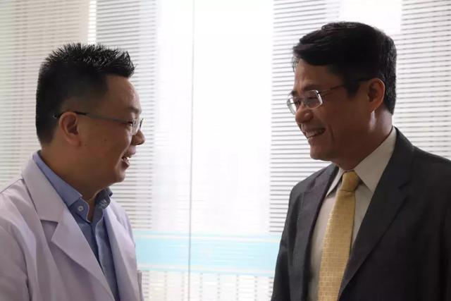 圖:林鴻源教授在VIP門診與張廣斌院長親切交流