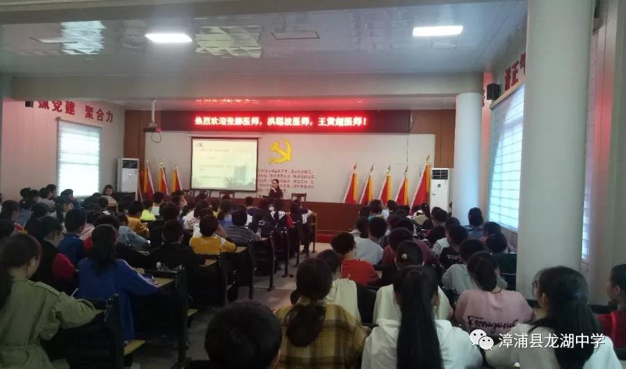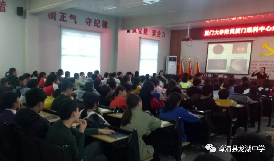 2019年12月17日下午,廈門大學附屬廈門眼科中心走進漳浦縣龍湖中學,響應國家提倡預防和控制青少年近視的政策,與龍湖中學共同開展青少年近視防控講座,主題是“近視防控,愛眼護眼,從你我做起”。龍湖中學校長蔡漢云,廈門大學眼科中心視光科任小軍主任醫(yī)生,洪聰波、劉淑婷、張娜、王黃超醫(yī)師,龍湖中學有關領導,七年1班、2班、3班班主任和三個班的全體學生近兩百人參加講座。