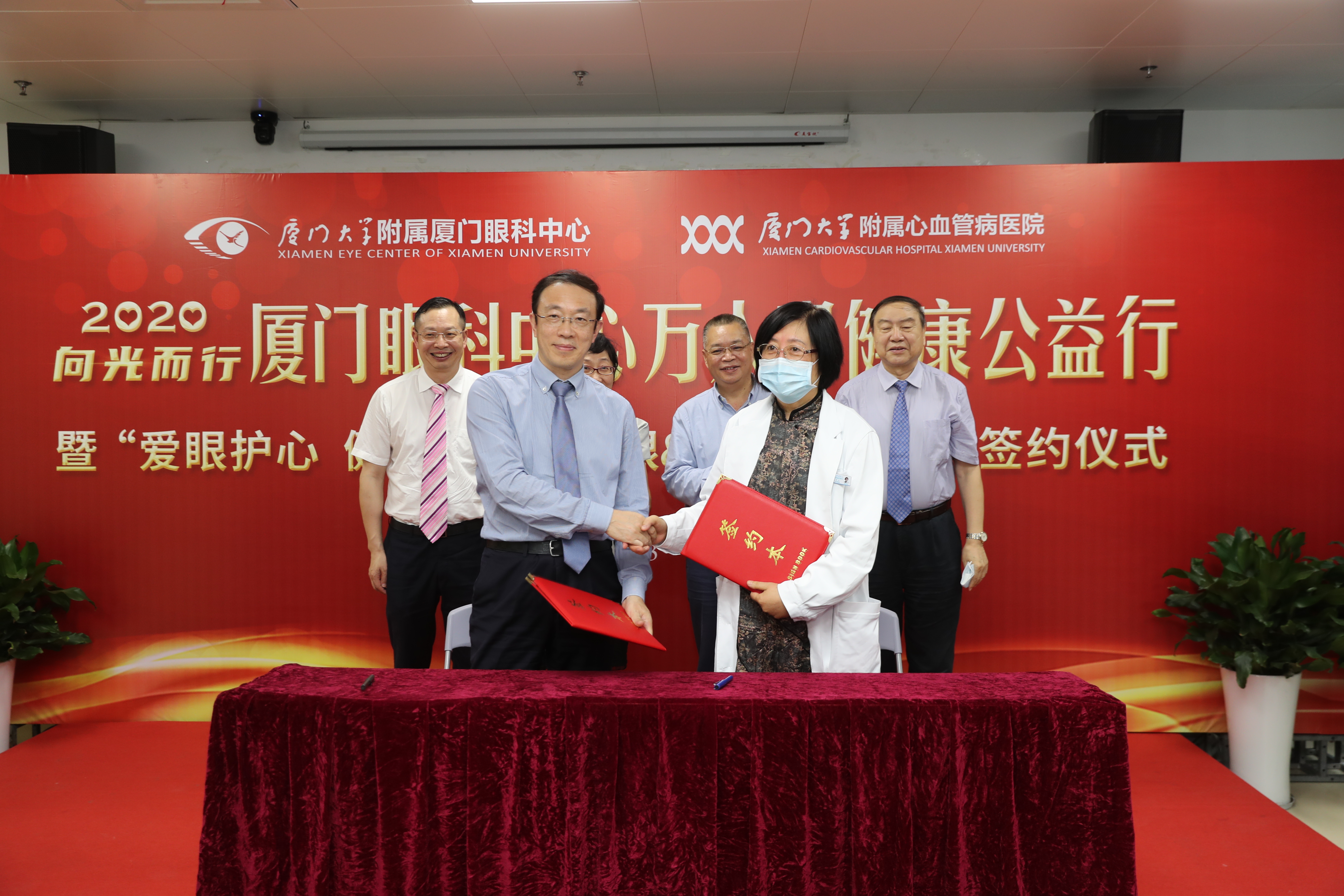 ▲廈門大學(xué)附屬心血管病醫(yī)院院長(zhǎng)王焱、廈門大學(xué)附屬?gòu)B門眼科中心總院長(zhǎng)黎曉新簽署戰(zhàn)略合作協(xié)議