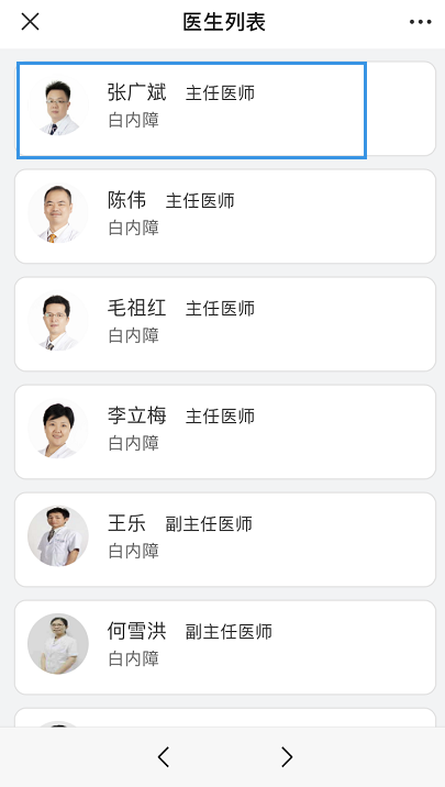 點(diǎn)擊“預(yù)約掛號”,選擇需要預(yù)約院區(qū)(如五緣院區(qū)),搜索或者選擇需要預(yù)約的科室(如白內(nèi)障科),選擇需要預(yù)約的醫(yī)生(如張廣斌醫(yī)生),確認(rèn)預(yù)約時間