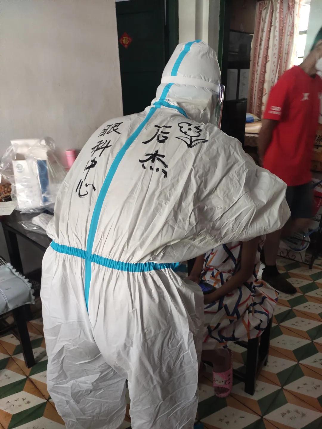 十多分鐘的路程,當走到住戶家中時,穿著防護服的后杰已全身濕透。雖然平??釔劢∩恚@段路程對他來說也略顯吃力。