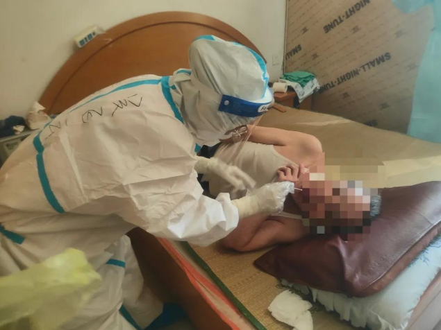 陽(yáng)臺(tái)山社區(qū)是在半山腰上,非常多的斜坡要爬,穿著防護(hù)服的我們,走路都會(huì)喘不過(guò)氣,但我們還要爬樓,嚴(yán)重供氧不足,是我們想象之外的難受。每一戶都不是在同一棟,這讓我們的體力消耗很快。