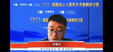 學(xué)術(shù)交流展風(fēng)采,麻醉手術(shù)共關(guān)懷。2021年12月25日至26日,由廈門大學(xué)附屬廈門眼科中心主辦的“2021年福建省小兒眼科手術(shù)麻醉研討班”成功在線上召開。廈門眼科中心總院長黎曉新教授、廈門市醫(yī)學(xué)會麻醉學(xué)會主任委員馬保新教授,廈門市醫(yī)師協(xié)會麻醉醫(yī)師分會會長陳振毅教授,北京大學(xué)國際學(xué)院姚蘭主任、廈門市醫(yī)學(xué)會副會長柳輝、廈門市衛(wèi)生健康委員會副主任蘇妙玲分別為大會致辭。