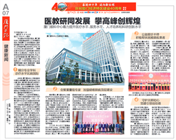 恰逢廈門經(jīng)濟(jì)特區(qū)隆重慶祝建設(shè)40周年,乘著改革開放的東風(fēng),廈門眼科中心與特區(qū)同頻共振,著力提升醫(yī)療水平、服務(wù)水平、人才培養(yǎng)及科研創(chuàng)新水平。廈門日報、廈門晚報、海西晨報、海峽導(dǎo)報等媒體進(jìn)行專題報道。