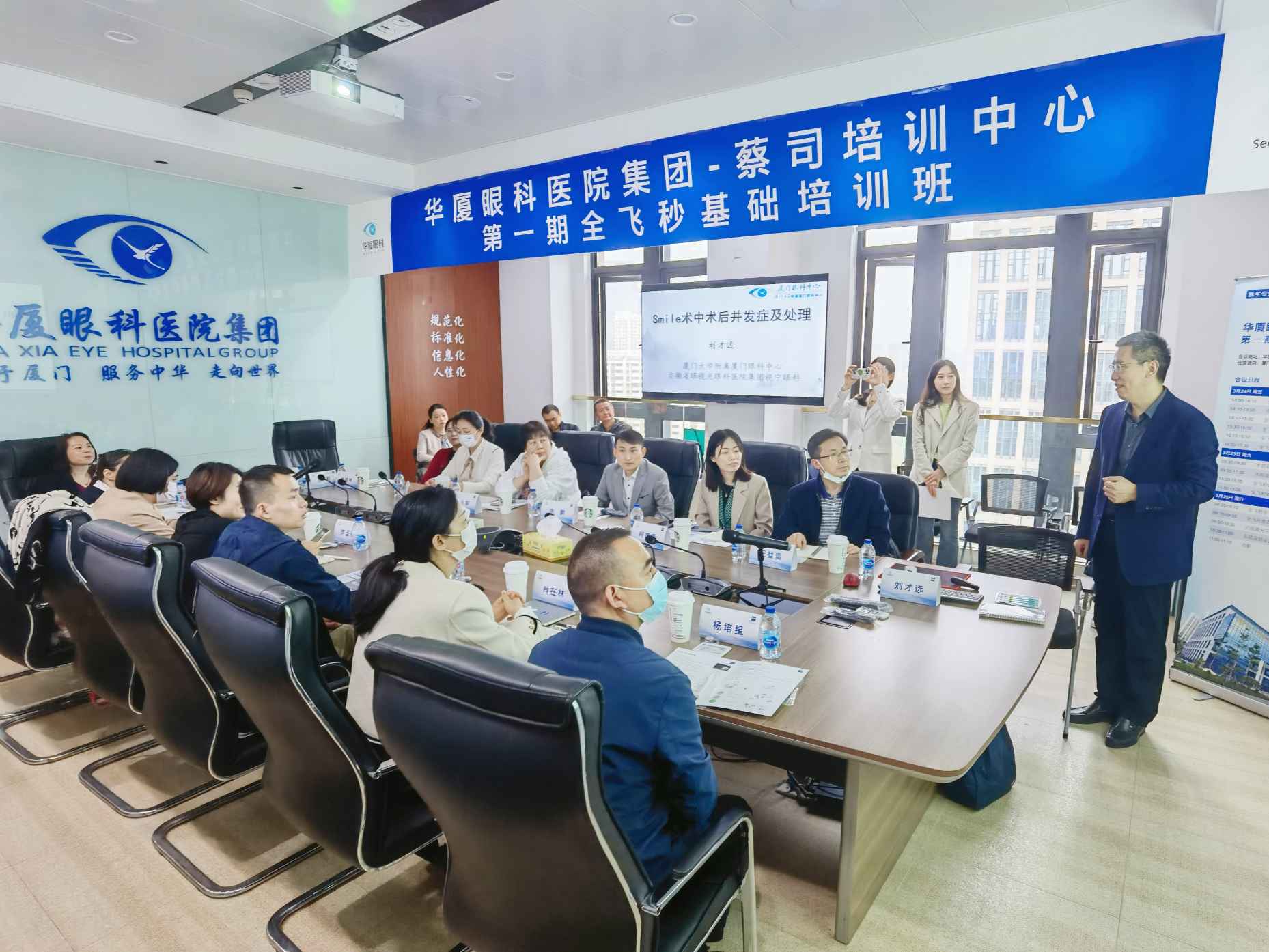 為持續(xù)提升全飛秒SMILE手術(shù)質(zhì)量、提高屈光醫(yī)生的手術(shù)技巧,規(guī)范集團(tuán)手術(shù)標(biāo)準(zhǔn)化流程,2023年3月24日至26日,為期3天的華廈眼科醫(yī)院集團(tuán)-蔡司第一期全飛秒基礎(chǔ)培訓(xùn)班在廈門(mén)眼科中心如期開(kāi)展。
