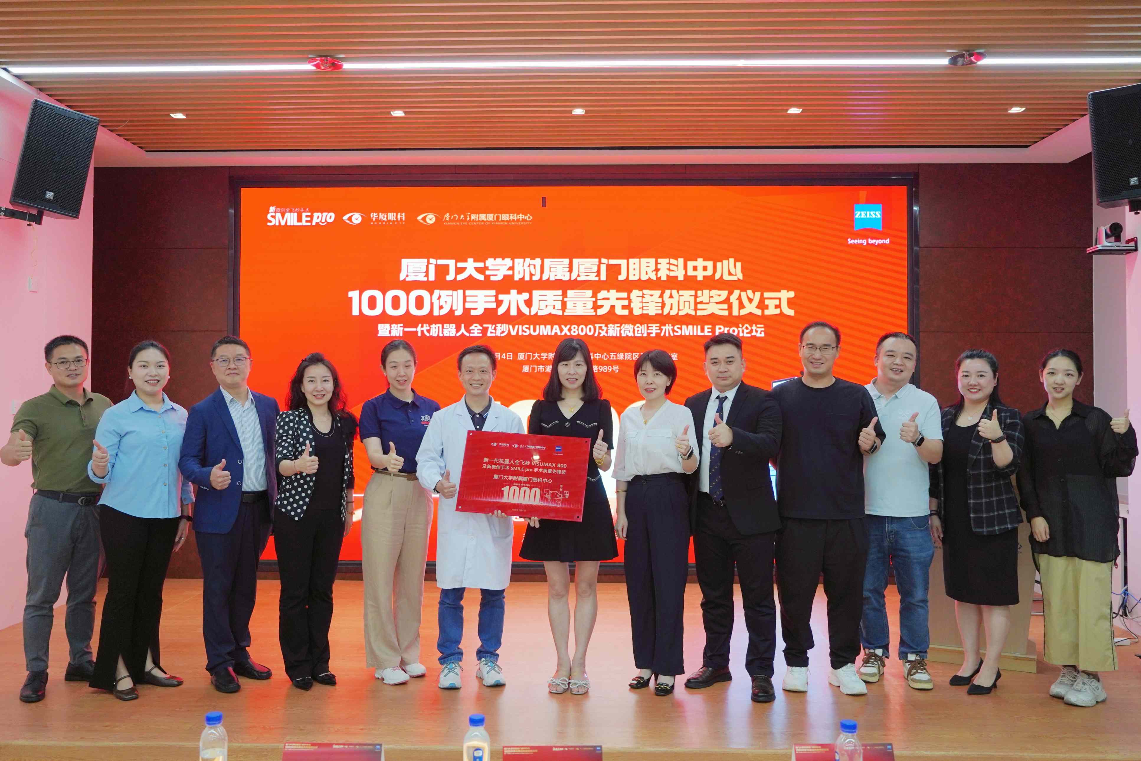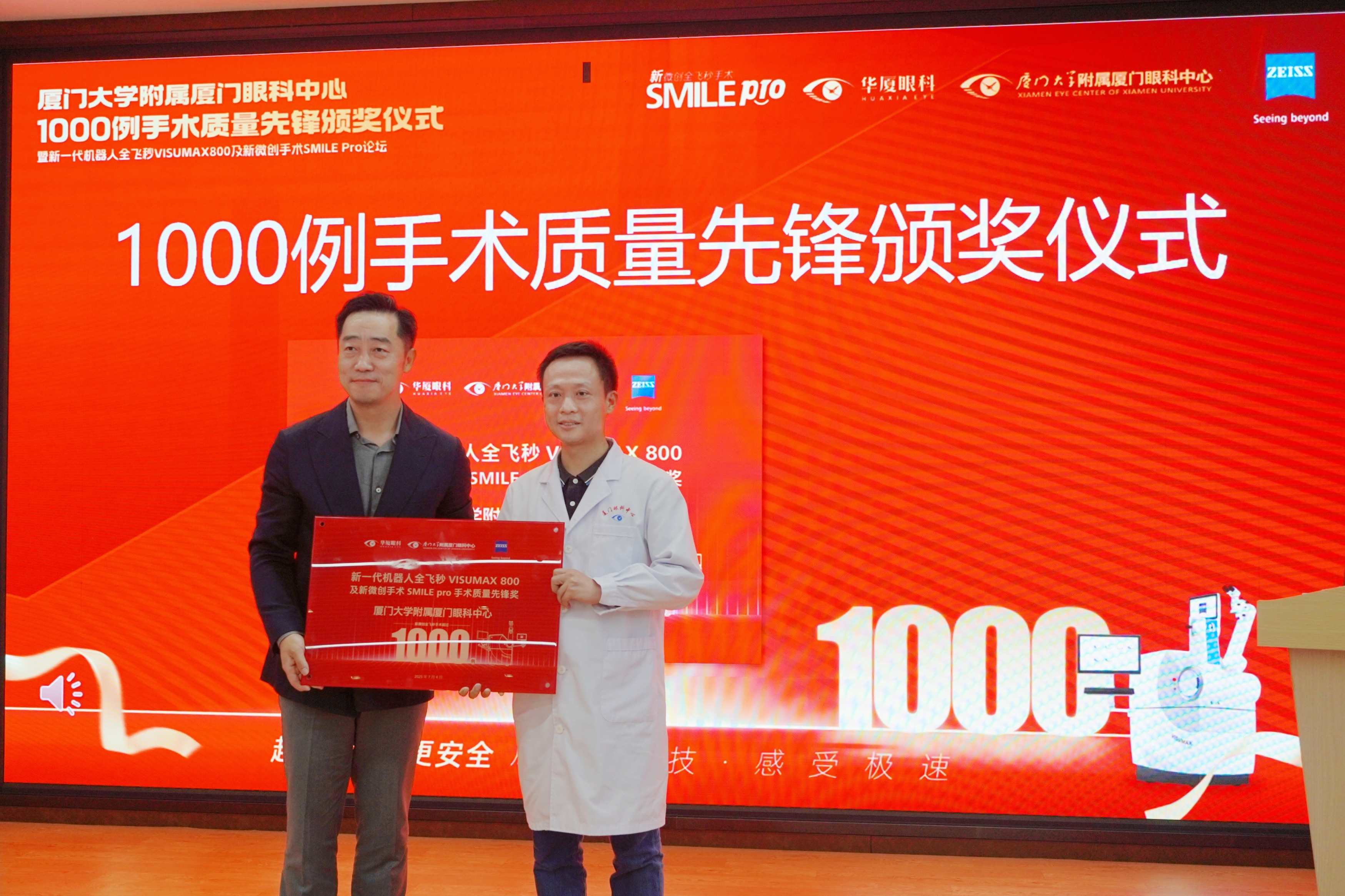 會議核心環(huán)節(jié),蔡司總部授予廈門眼科中心“SMILE Pro 1000例手術(shù)質(zhì)量先鋒獎”,這一殊榮是對廈門眼科中心在全飛秒SMILE Pro手術(shù)領(lǐng)域卓越成就的高度認(rèn)可。