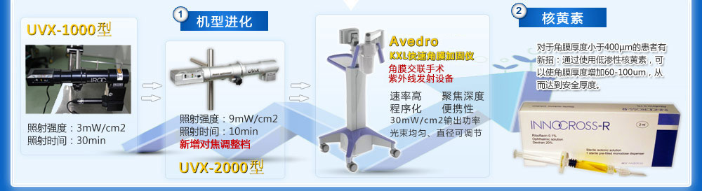 應用370nm紫外線對角膜進行局部照射,醫(yī)師可重塑角膜結構。 廈門大學附屬廈門眼科中心將進一步引進角膜固定杯和特殊核黃素以免除微創(chuàng)。2.照射時間短